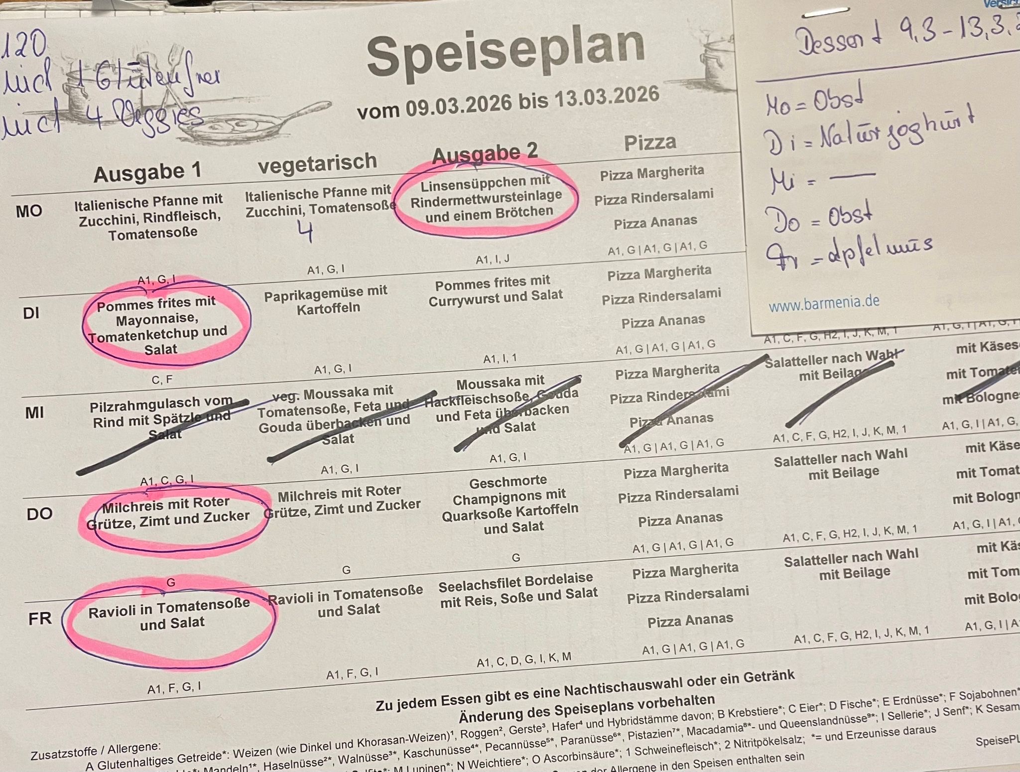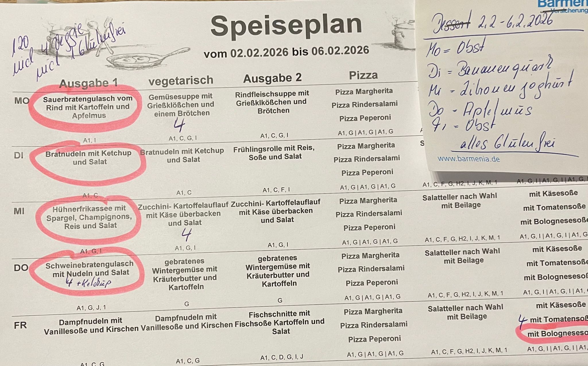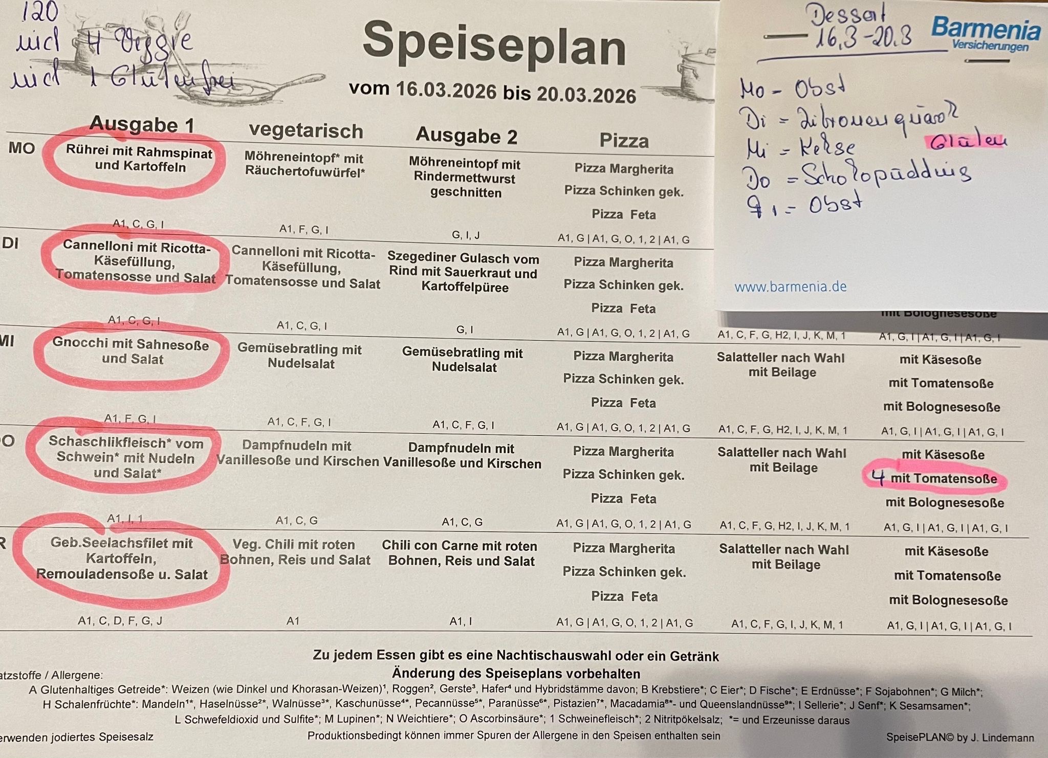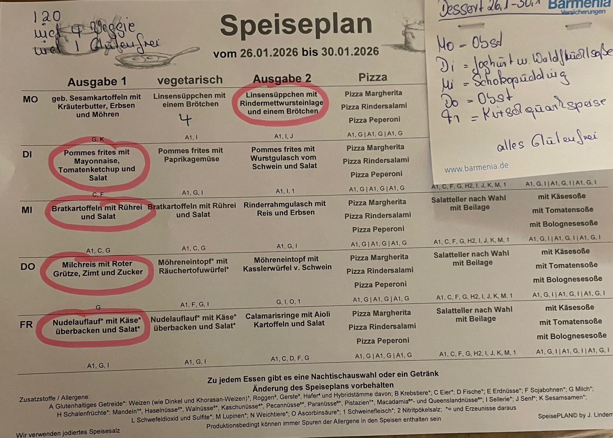Alle Informationen zu Zusatzstoffen und Allergenen entnehmen Sie bitte den Speisenplänen des Mensavereins Gesamtschule Ronsdorf