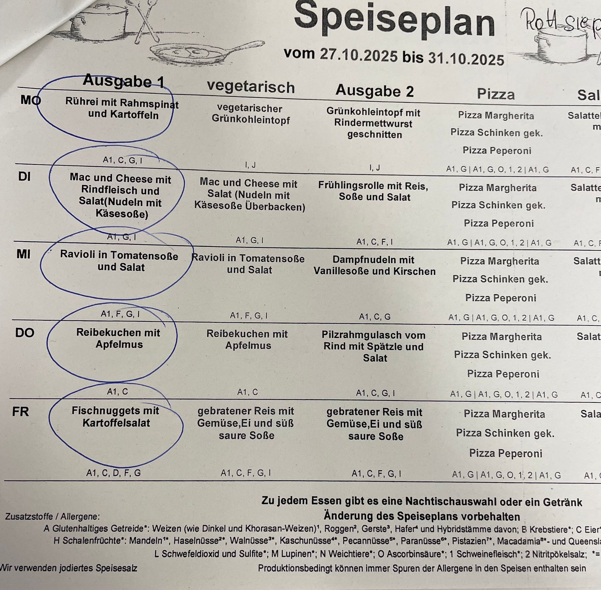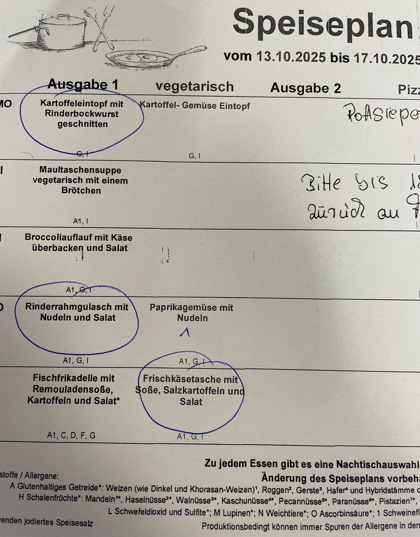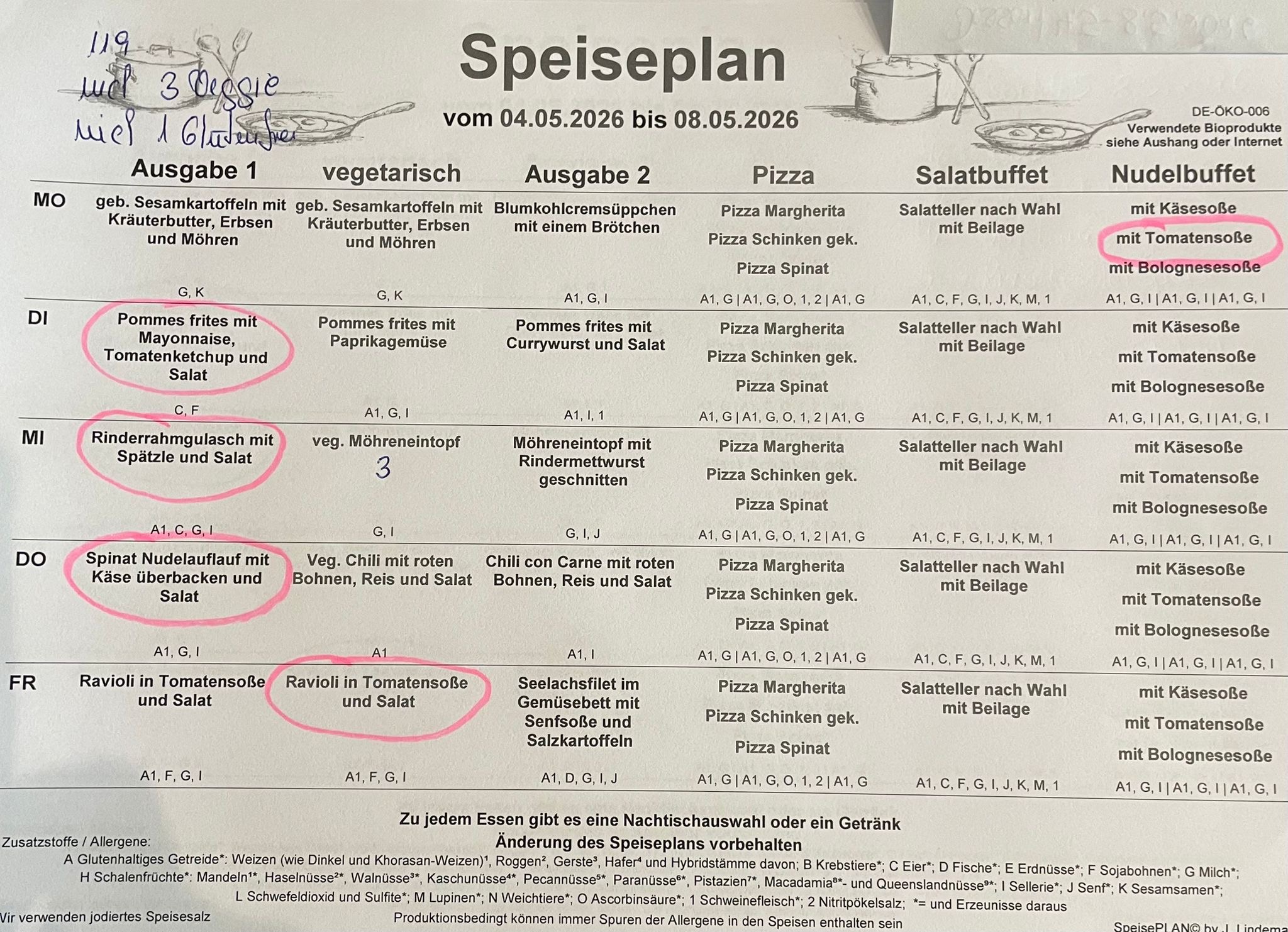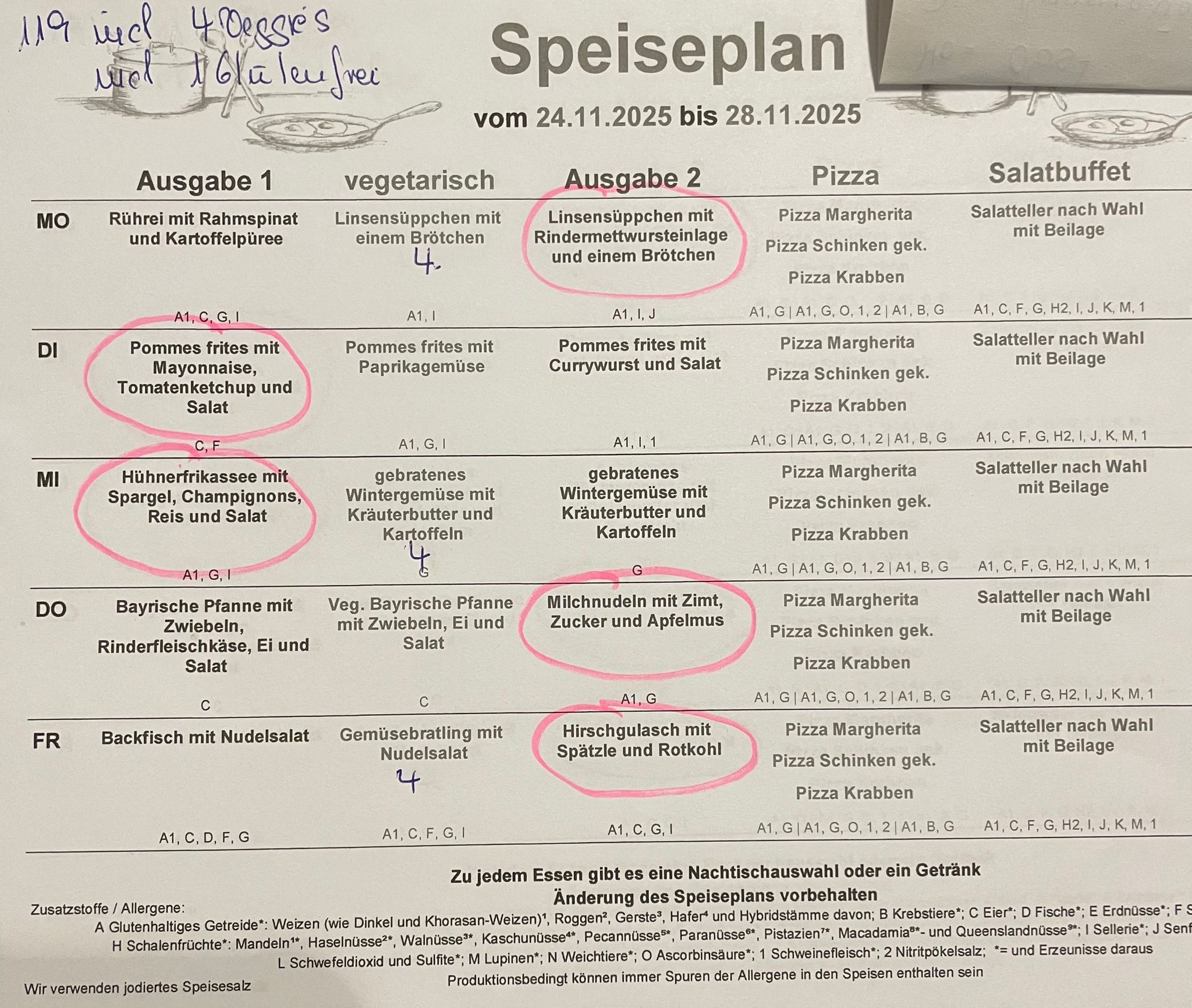 wir können nun Ihrem Wunsch nach mehr Information nachkommen und stellen hier wöchentlich den Essenplan für die Mittagsversorgung im Offenen Ganztag ein. Dabei möchten insbesondere auf die gesonderte Ausweisung der Zusatzstoffe wegen eventueller Unverträglichkeiten hinweisen.